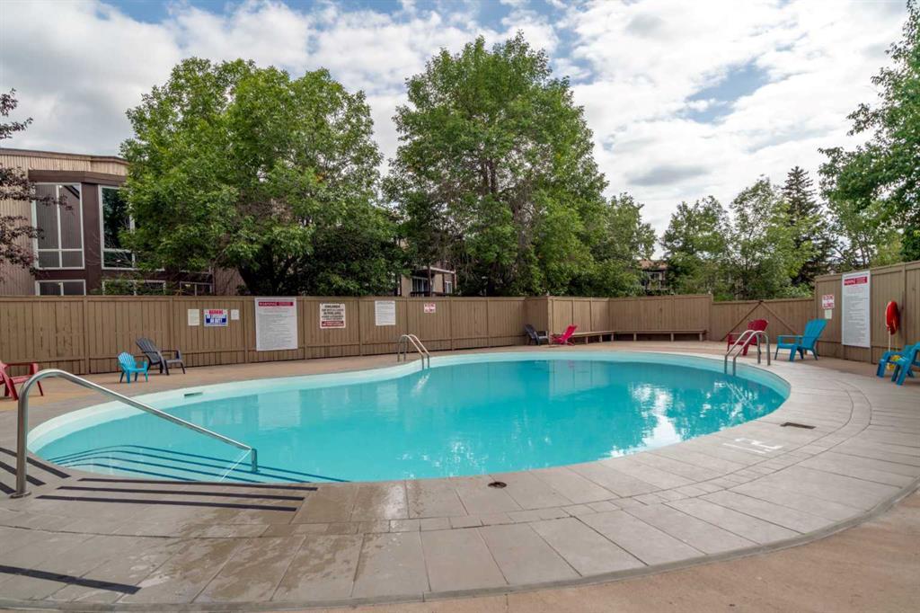 **Open House Oct 4th 2-4pm** Welcome to this stylishly updated 1 bed + 1 bath condo in the highly sought-after Hays Farm community, offering approximately 700 sq ft of comfortable living space. With a long list of upgrades and a turn-key design, all that’s left to do is move in. The interior showcases new luxury vinyl plank flooring and thoughtfully chosen wall accents that add warmth and character throughout. A bright living room opens through oversized sliding doors to a generous 12’ x 4’ balcony, creating a seamless indoor-outdoor flow. The renovated kitchen features stainless steel appliances, updated cabinetry, and a functional layout that connects to the dining area—ideal for everyday living or hosting friends. The king-sized primary bedroom provides plenty of room for a desk or reading nook, and the rare in-suite laundry brings everyday convenience. Residents of Hays Farm enjoy access to an outdoor pool, recreation center, and tennis/pickleball courts, while the complex itself has seen recent upgrades including new windows, balcony doors, fencing, and LED parking lot lighting. Perfectly situated, this home is close to shops, restaurants, parks, and transit, with Glenmore Reservoir and downtown Calgary only minutes away.