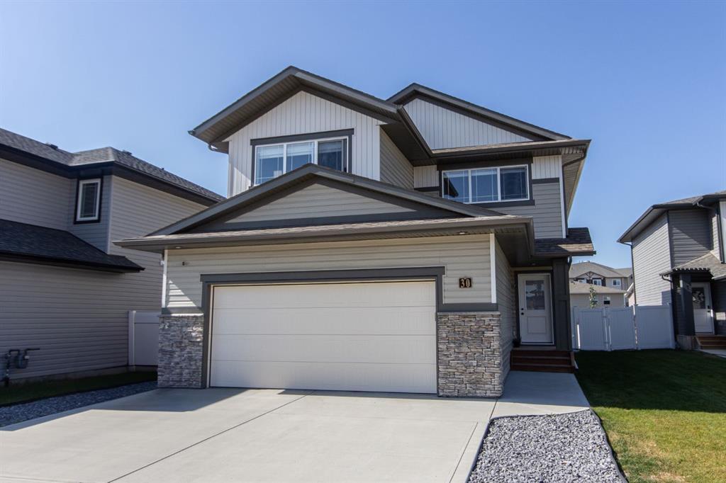 Check out this like new 2 storey home in an amazing family neighbourhood! Situated in a quiet cul-de-sac with minimal traffic in beautiful Timber Ridge, you're walking distance to multiple schools, a wetland area with walking trails, nearby playground, and just a few minutes away from numerous amenities. This home offers a bright and open layout with low maintenance vinyl and laminate flooring throughout the main floor living space, a modern two tone kitchen with raised cabinetry, stainless steel appliances, and a large walk in pantry. The open living and dining room areas overlook the large West facing backyard, and you'll love relaxing on the oversized deck on summer evenings. The top floor features a spacious bonus room, nicely sized kids rooms with walk in closets that share a 4 pce bathroom, conveniently located laundry, and a beautiful primary suite. The primary bedroom is large and features a private ensuite with walk in shower, huge vanity, private water closet, and a walk in closet. The basement is undeveloped awaits your finishing ideas, with space to add a 4th bedroom, 4th bathroom, and nicely sized family room. The massive yard on this 147' deep lot will easily accommodate RV parking or space to build a second detached shop or garage, and the 23x23 attached garage is insulated and boarded. This home comes with remaining Alberta New Home Warranty until November of 2029.