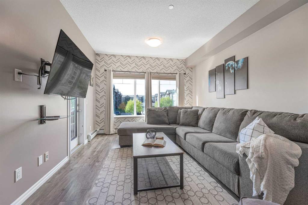 Welcome to The Courtyards in Kings Heights. This one bedroom suite is a must see and offers two parking stalls. The home has been tastefully updated over the years with kitchen and bathroom sinks and faucets (2021), high end laminate barnwood flooring, a stylish barn door, full height kitchen cabinets, backsplash, and ceramic tile in the entry (2021). Window coverings and a Phantom screen door to the balcony were also added in 2021. More recent upgrades in 2025 include a new shower head, a bidet, and a sunshade on the balcony. A storage cage is also included. This suite combines thoughtful details, ample storage, and the convenience of two parking stalls. Located close to Deerfoot, Yankee Valley Boulevard, shopping just across the street, and surrounded by beautiful walking paths, this home offers both comfort and convenience.