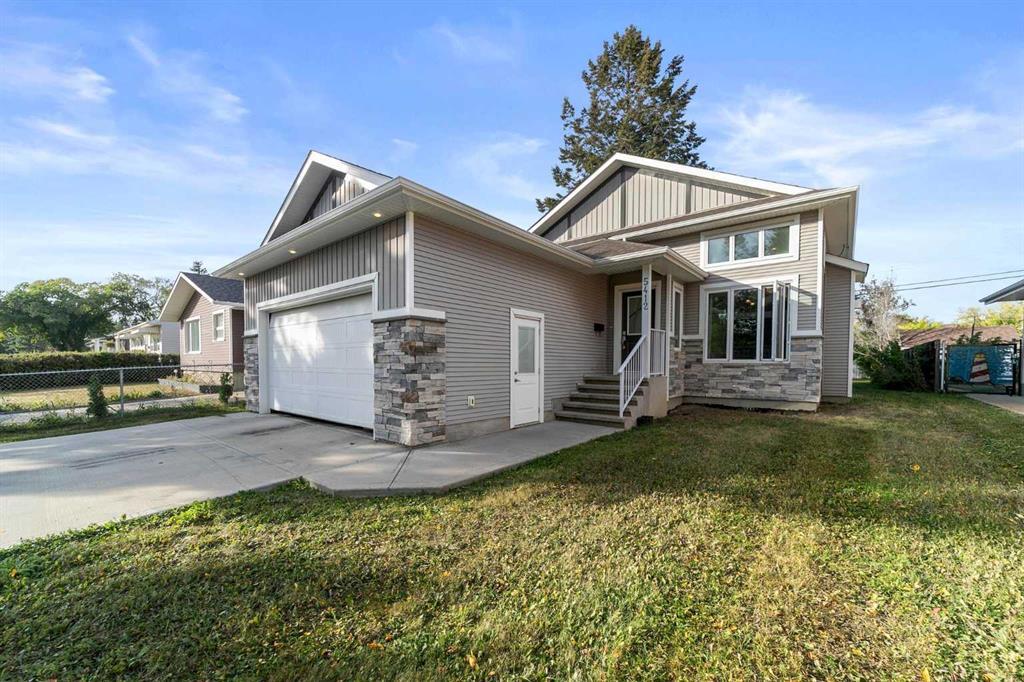 What a find! Built in 2015, this open and modern Bi-Level with huge yard and double attached garage is ready to be personalized with your custom touches. Bright and airy from the moment you walk in, the vaulted ceilings, welcoming gas fireplace and open concept main living space offer both comfort and grandeur to create your very own oasis. Just a few steps up leads you to the dining area and kitchen where cooking and entertaining can be done in style, featuring stone counter tops, built in seating bar, stainless appliances, a corner pantry and sprawling island with double sink. The patio door leads you onto the spacious composite deck where you can connect your gas BBQ, relax and enjoy outdoor living and the views of your fenced back yard. The primary suite on this level is complete with walk in closet and 4 piece ensuite including a corner soaking tub to meet all your needs! Another full bathroom and second bedroom complete the top floor, while the basement offers endless potential for development with a bathroom rough in, laundry, storage and potential for more bedrooms or rec area. You'll find all of this in an established neighborhood just a couple blocks from services, shops and amenities - come see it while you can!