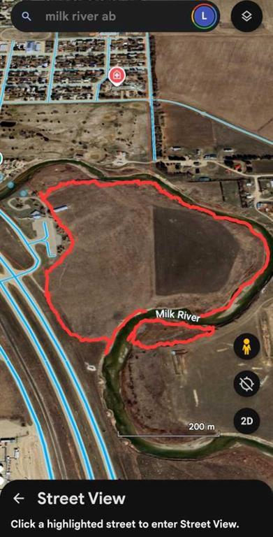 FOR SALE, 41.8 ACRES DIRECTLY SOUTH OF MILK RIVER. LAND IS IN HAY AND PASTURE. THERE IS A 55x110 QUONSET ON THE LAND THIS PROPERTY HAS UNLIMITED POTENTIAL. BORDERING THE MILK RIVER AND RIGHT OFF OF HIGHWAY 4. 40MINS FROM LETHBRIDGE AND 10MINS FROM COUTTS/SWEETGRASS U.S.A. PORT OF ENTRY.