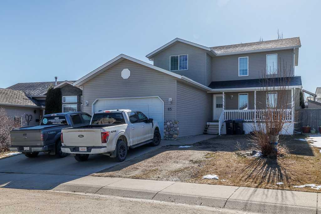 Fine Family Home in Fox Run with 5 bedrooms and 4 baths! This home on a nice Crescent is sure to please! Enjoy a beverage on the large front veranda or invite your family and friends to a summertime BBQ in the huge back yard which is very private! Step inside and you are greeted with a cozy living room with a gas fireplace. Great Kitchen with spacious cabinets, corner pantry, eating bar and a patio door to a small deck perfect for the BBQ. Main floor laundry and a 2 piece bath right off the garage entry is very functional! Loads of built in shelving in the garage for all your storage needs. Upstairs you will find a large primary bedroom with a 4 pc ensuite, 2 more nice sized bedrooms and another 4 pc bath. All bathrooms are tiled with underfloor heat! Enjoy the "chill" of the central air conditioning on those hot summer days! The family room down is perfect for entertaining and you will also find 2 more bedrooms and another bath! This plumber built home also features on demand hot water system, high efficiency furnace, and in floor heat in the basement. Upgrades include a newer fridge and stove, hot water system and the shingles were done about 3 years ago. A few extras to off the list with 2 sheds, parking pad, play structure, trampoline and a central vac.
